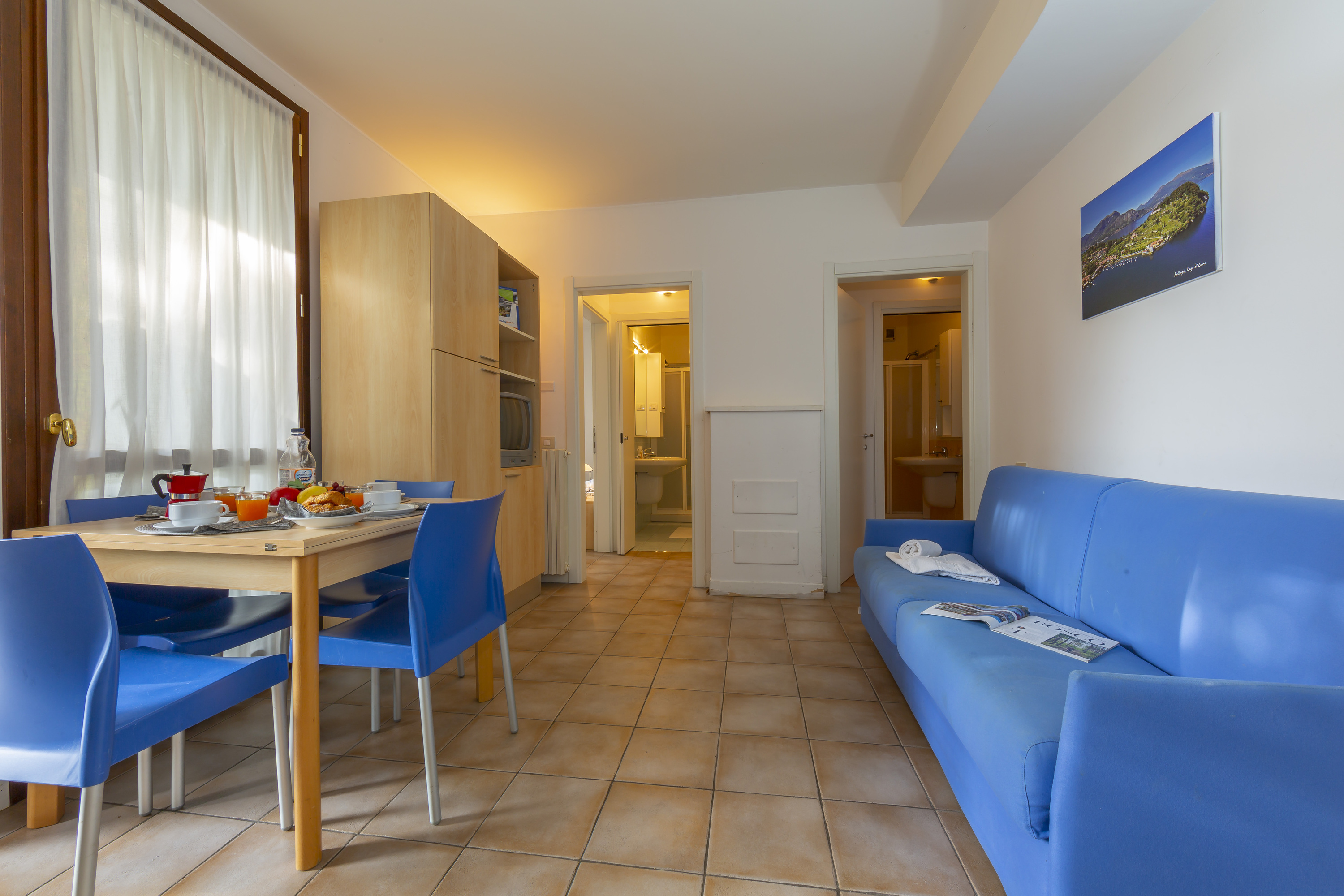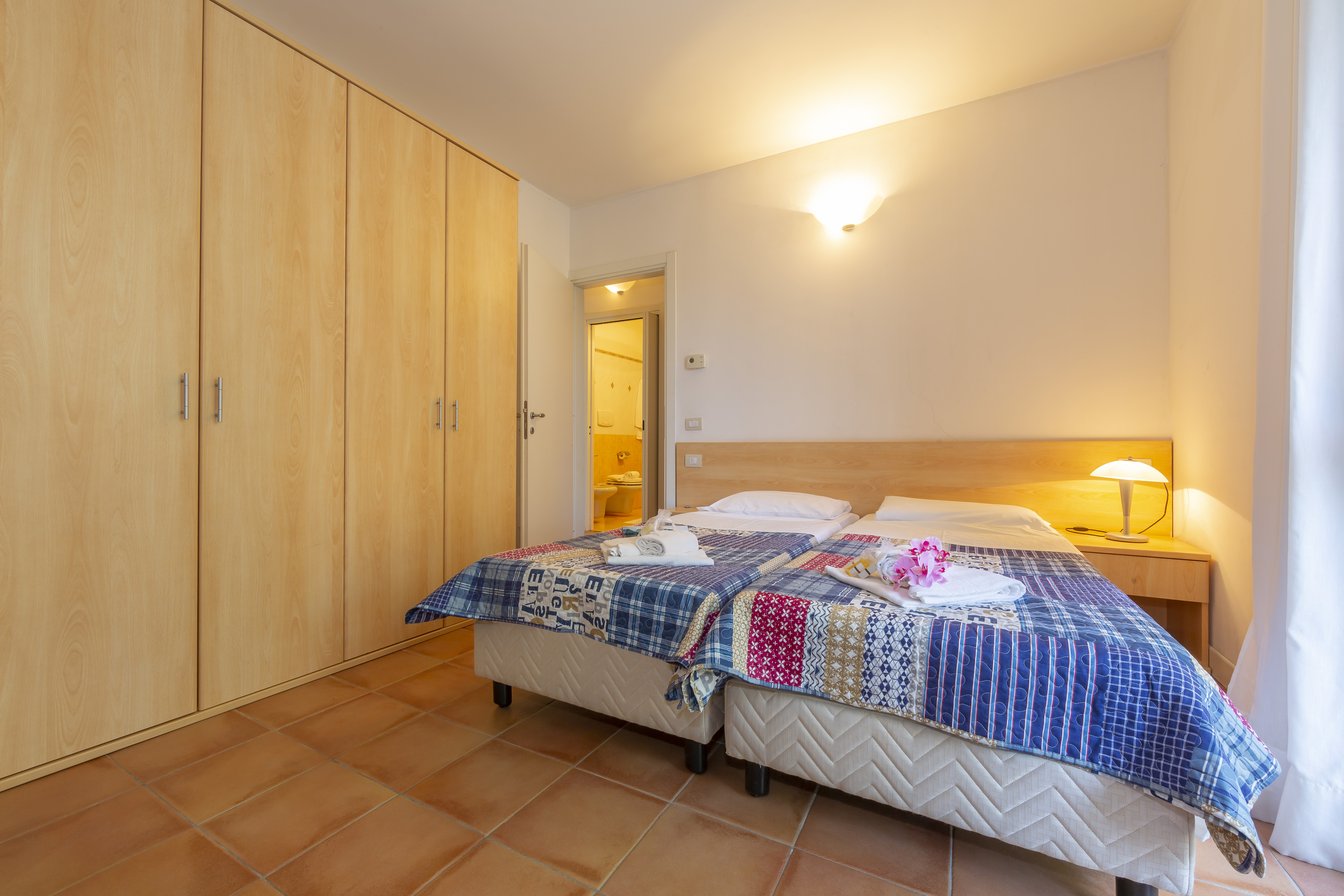 L'appartamento può ospitare 8 persone e dispone di un giardino o di un balcone privato da sfruttare a proprio piacimento. Un accogliente soggiorno con divano letto matrimoniale e una cucina completamente attrezzata con tinello caratterizzano l'area comune all'interno dell'appartamento. La zona notte è moderna, pratica e flessibile. Ci sono 3 camere da letto doppie con un letto matrimoniale o 2 letti singoli. Un bagno con doccia, WC e bidet completa la comoda sistemazione.