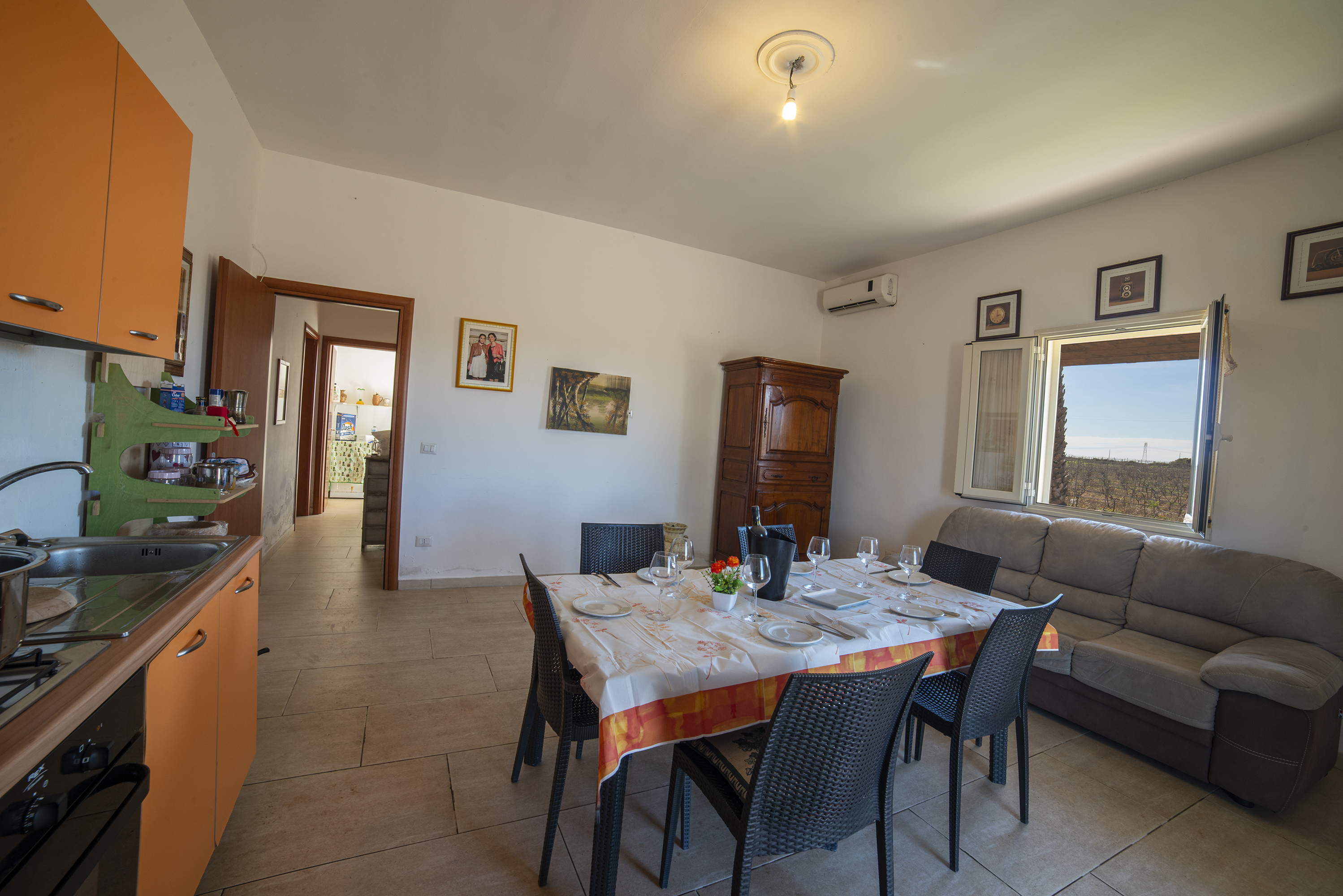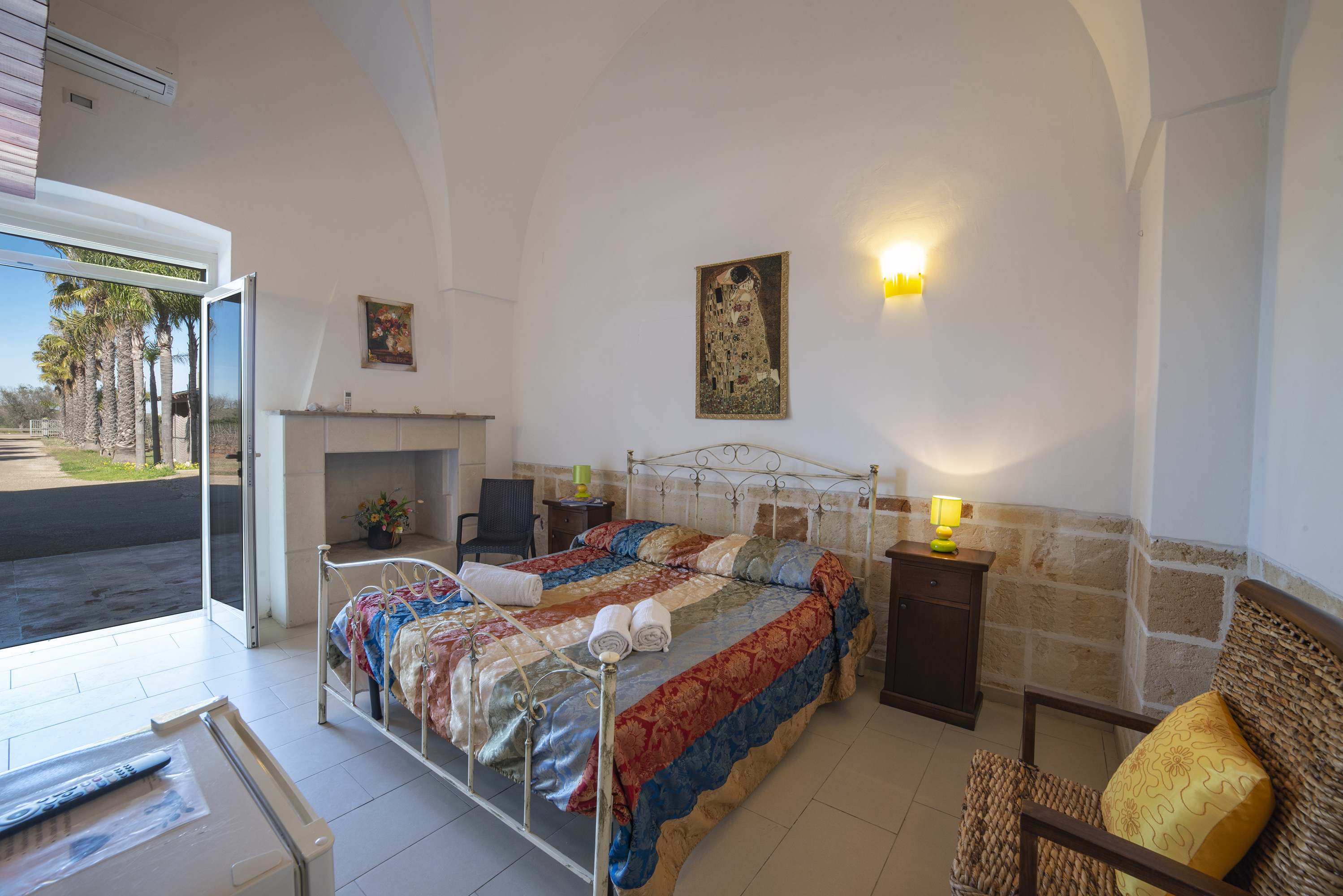Al primo piano, un appartamento ampio e luminoso si apre su un meraviglioso terrazzo panoramico affacciato sulla tenuta: uno spazio perfetto per godere dei tramonti salentini. L’abitazione è composta da soggiorno, tinello, cucinino, due disimpegni, due bagni, due camere da letto, veranda e portico.